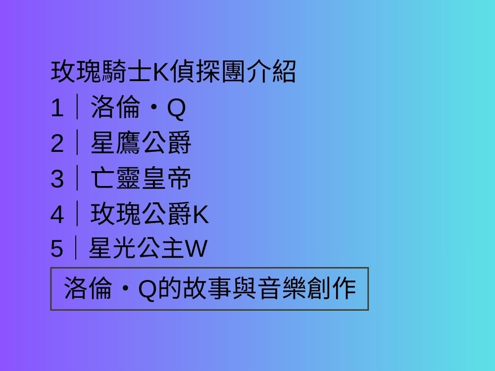 玫瑰騎士K偵探團介紹|洛倫・Q|星鷹公爵|亡靈皇帝|玫瑰公爵K|星光公主W|洛倫・Q的故事與音樂創作
